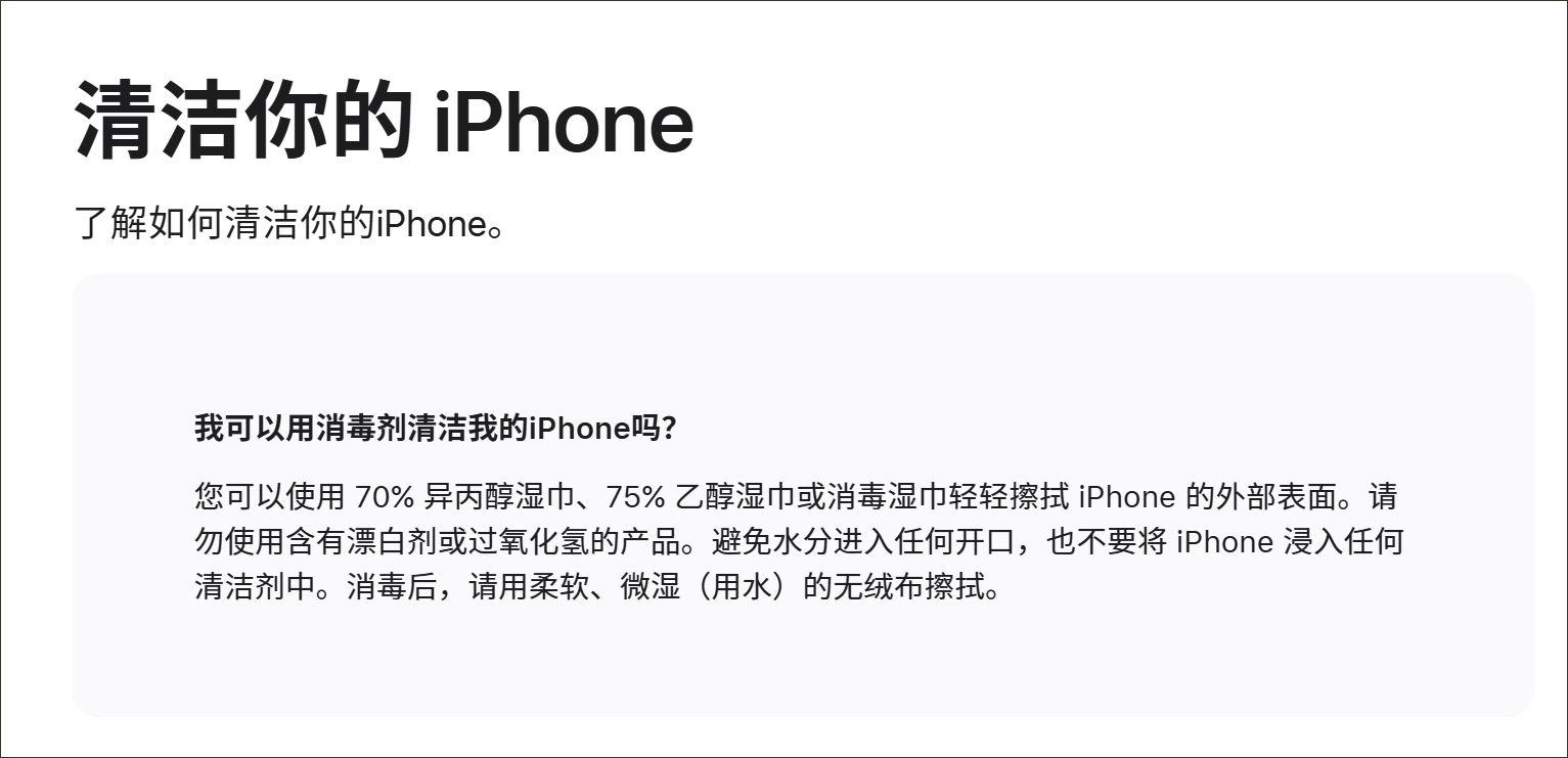 通常来说,市面上售卖的多数湿巾,特别是消毒湿巾,含有高浓度的异丙醇或乙醇,但这两种成分均在苹果官网建议的清洁剂名单中。值得关注的问题在于,这位网友并未透露其使用了含有什么成分的湿巾,也未提供更多细节,因此难以作出进一步的分析。