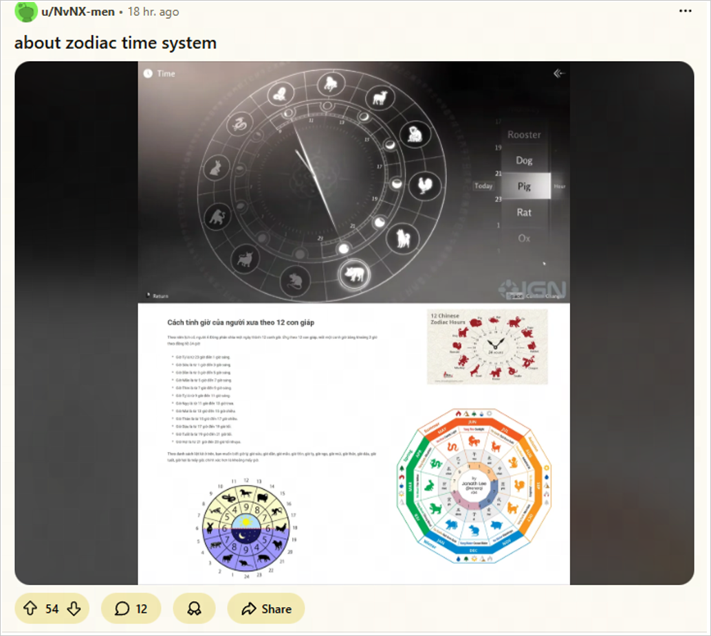 面对全球文化差异,《燕云十六声》还以“可玩性”承载文化符号,构建全球化叙事语言:对厚重历史剧情进行易懂的本地化翻译;将“十二时辰”以十二生肖形象化呈现,吸引外国网友主动研究;设计“太极炸鱼”“狗子打麻将”等趣味玩法,激发玩家对中华文化的兴趣。