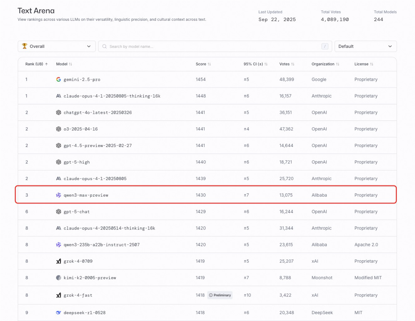 近期,阿里发布的旗舰模型Qwen3-Max,性能超过GPT5、Claude Opus 4等国际竞争者,跻身全球前三。