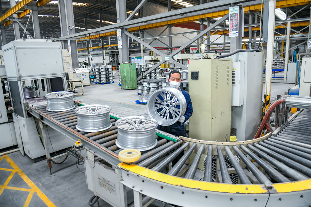 2025年11月14日,贵州省黔西南州兴仁市巴铃重工业园区,工人在加工汽车轮毂。 东方IC