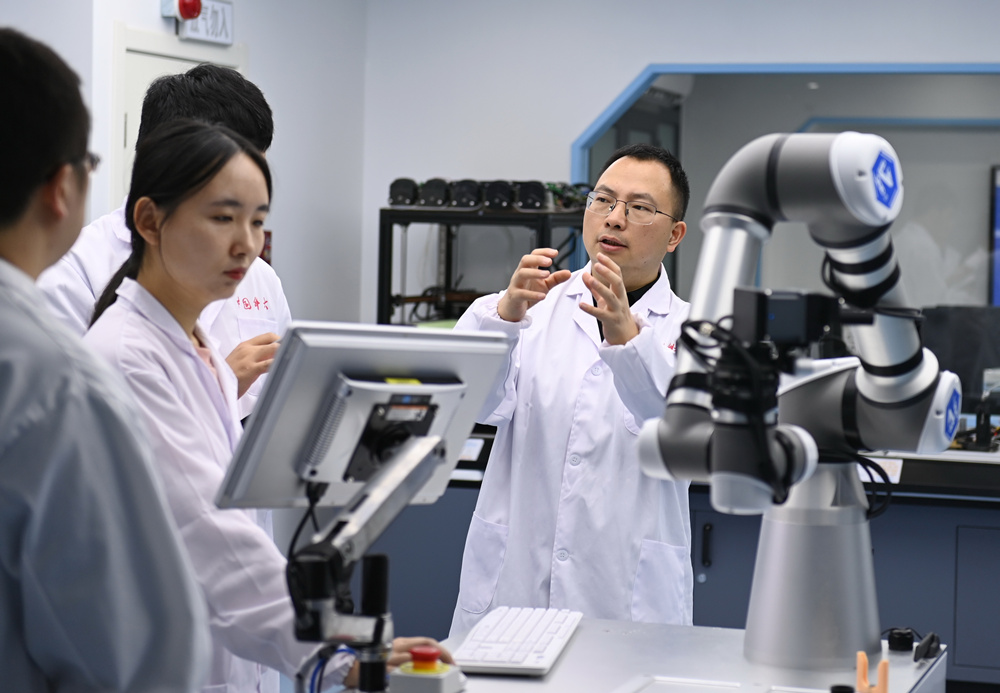 2022年10月,中国科学技术大学的机器化学家实验室,中国科学技术大学化学物理系教授江俊团队正在交流。 东方IC