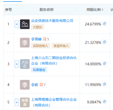 工商资料显示,百保(上海)科技有限公司的股东结构中,众安信息技术服务有限公司持股24.68%,李雪峰持股21.33%,上海火山石二期创业投资合伙企业持股14.00%。火山石投资是一家知名创投机构,成立于2016年5月,专注于泛智能技术和医疗健康领域的早期投资,管理规模超过30亿元人民币。这样的股东背景曾为百保君增信不少。