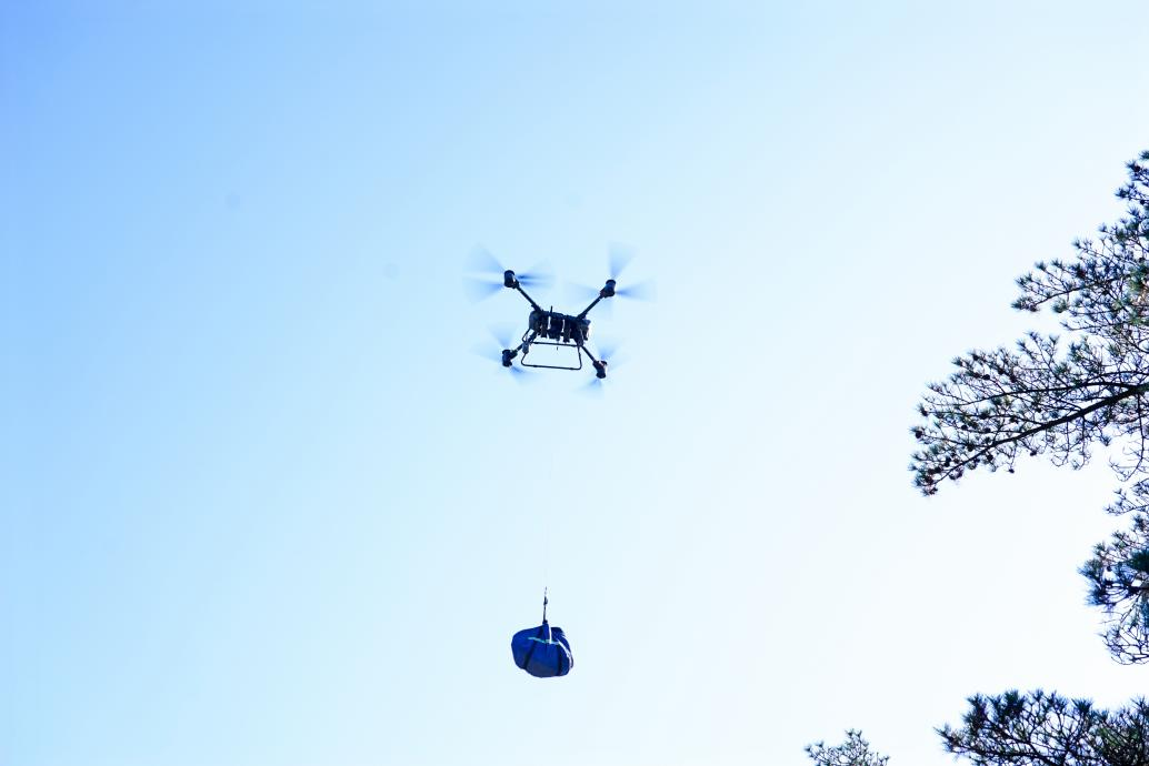 无人机往黄山上运送物资