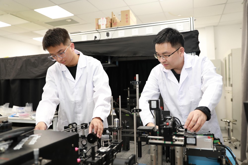 共同通讯作者韩三阳(右)与其学生、共同一作张鹏 清华大学