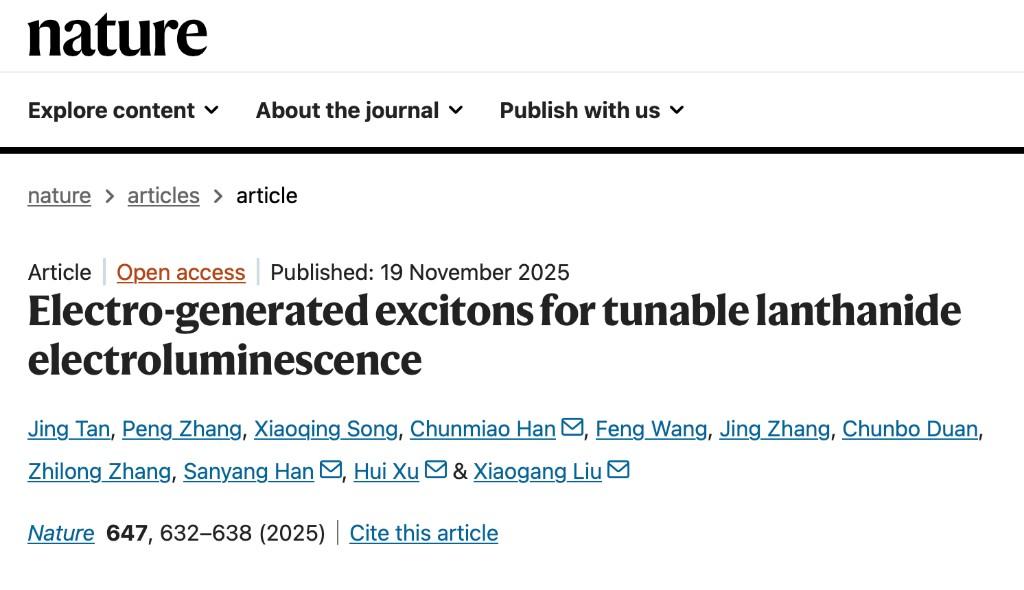 这项突破源于团队14年的持续深耕。早在2020年,韩三阳团队就曾在《自然》发表稀土材料光致发光相关成果,此次研究进一步构建起从光驱动到电驱动的完整技术链条。值得关注的是,该成果无需大幅改动器件结构,仅通过调控稀土离子即可实现多色发光,在高分辨率显示、近红外技术等领域应用潜力显著,未来有望拓展至人体健康监测、无创检测、农作物补光等场景。