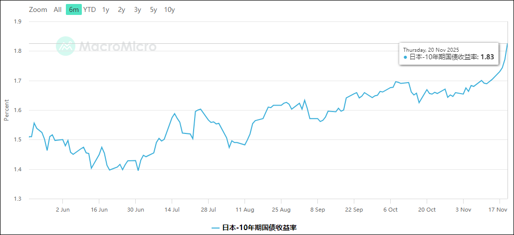 日本10年期国债收益率近六个月走势,近期不断走高 MacroMicro