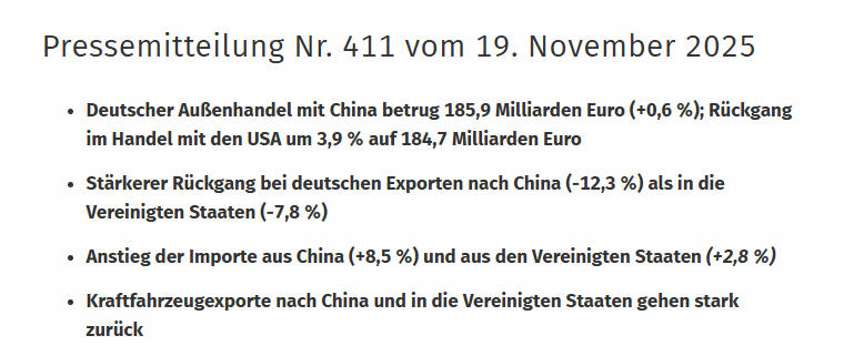 荷兰国际集团(ING)经济学家卡斯滕·布热斯基对法新社表示,中国重新夺回德国主要贸易伙伴的位置,此发展“反映了美国关税对德国对美出口的负面影响”。根据今年7月达成的贸易协议,欧盟对美出口面临15%的基准关税,远高于特朗普重返白宫前。这对已陷入困境的德国经济构成重负。
