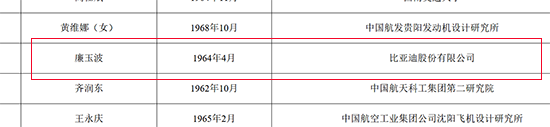 值得关注的是,在新当选中国工程院院士名单中,来自比亚迪股份有限公司的廉玉波,以及来自宁德时代新能源科技股份有限公司的吴凯当选。