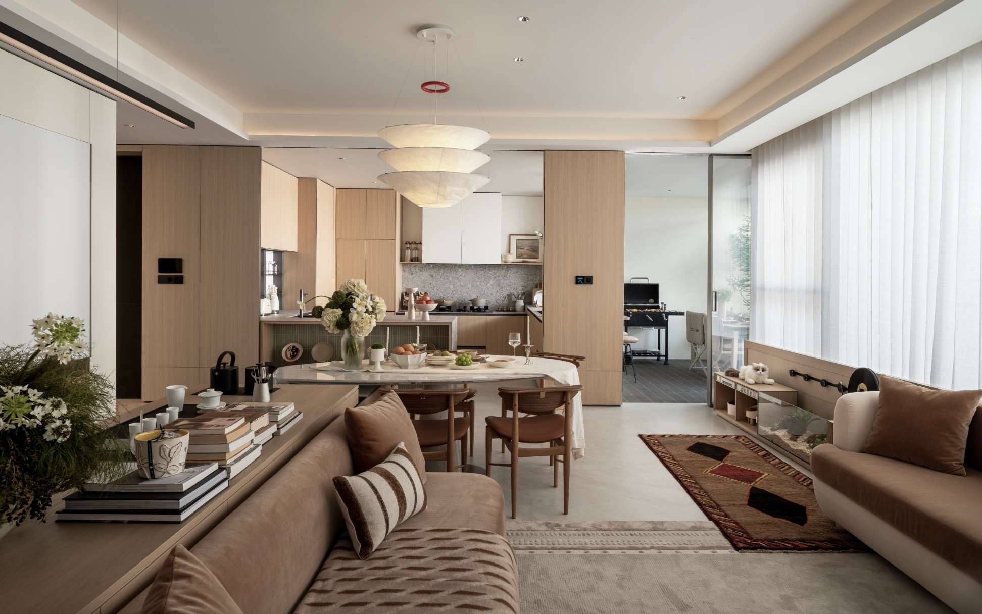 其中,36平方米的“一套房”在极小户型的面积上通过模块化设计实现功能最大化。入户玄关、清洁收纳区、轻享厨房、多功能客厅、就寝区及休闲阳台等功能板块无缝衔接,搭配整体卫浴、绿色建材与智能化系统,让“小空间”承载“大生活”。
