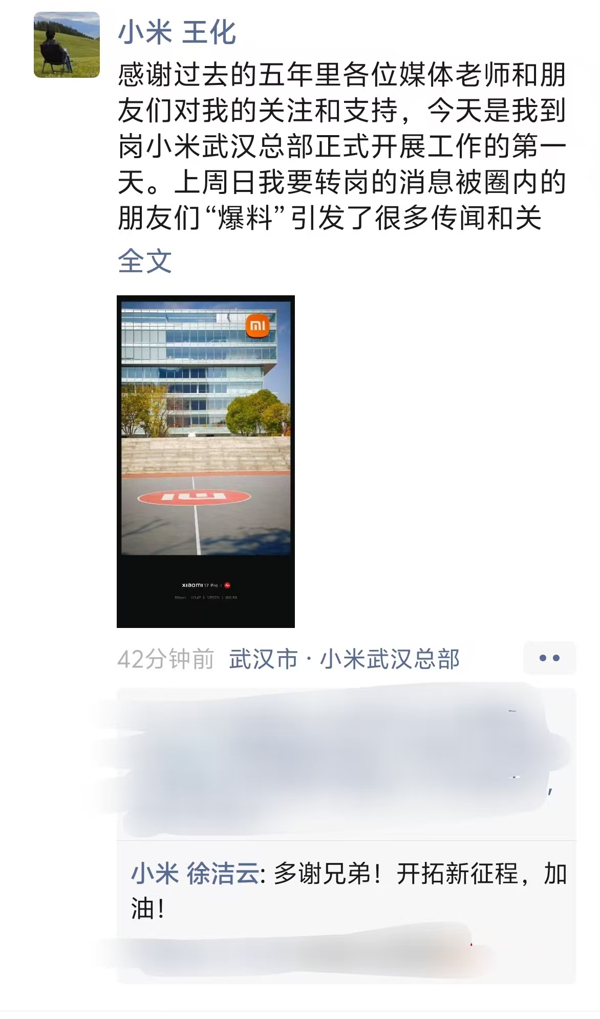 观察者网从朋友圈看到,近期因转岗一事备受关注的小米公关部总经理王化打破沉默。
