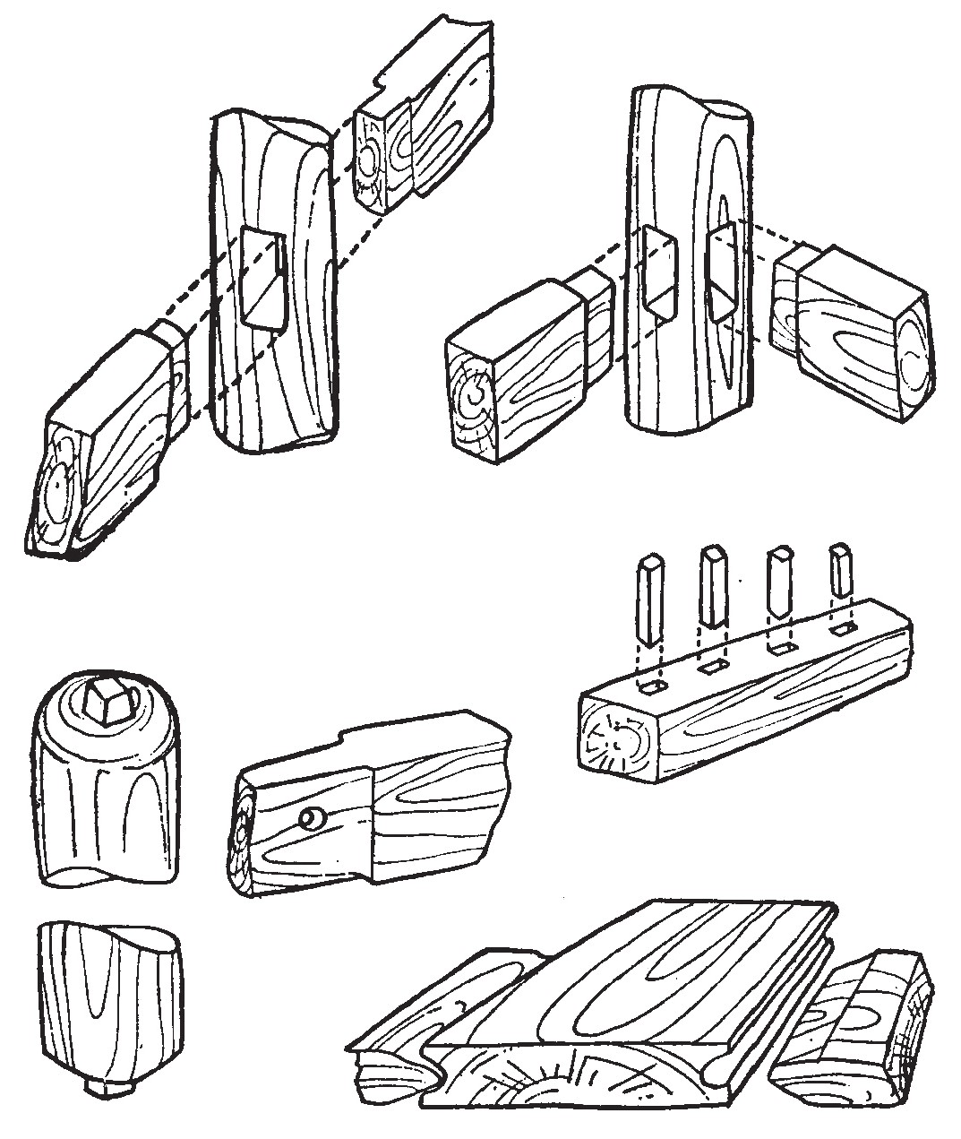大自然是最好的老师。石块凸凹相抵的表面、树丫托住断木、猎物的骨关节都在向远古人类演示榫卯的构成原理(图1-1)。