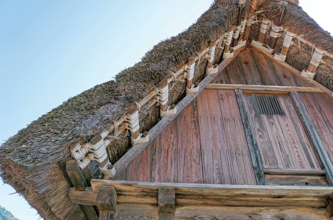 图1-11日本白川乡“合掌造”民屋屋架中的绑扎节点(拍摄 :赵鹏)