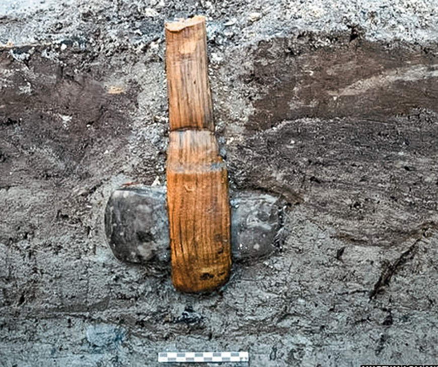 图1-2丹麦出土的新石器时代石斧(BBC NEWS. Stone age axe found with wood handle. https://www.bbc.com/news/science-environment-30197084)