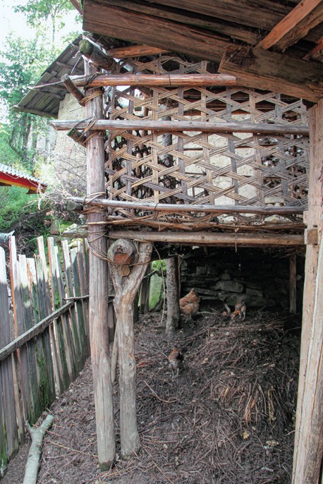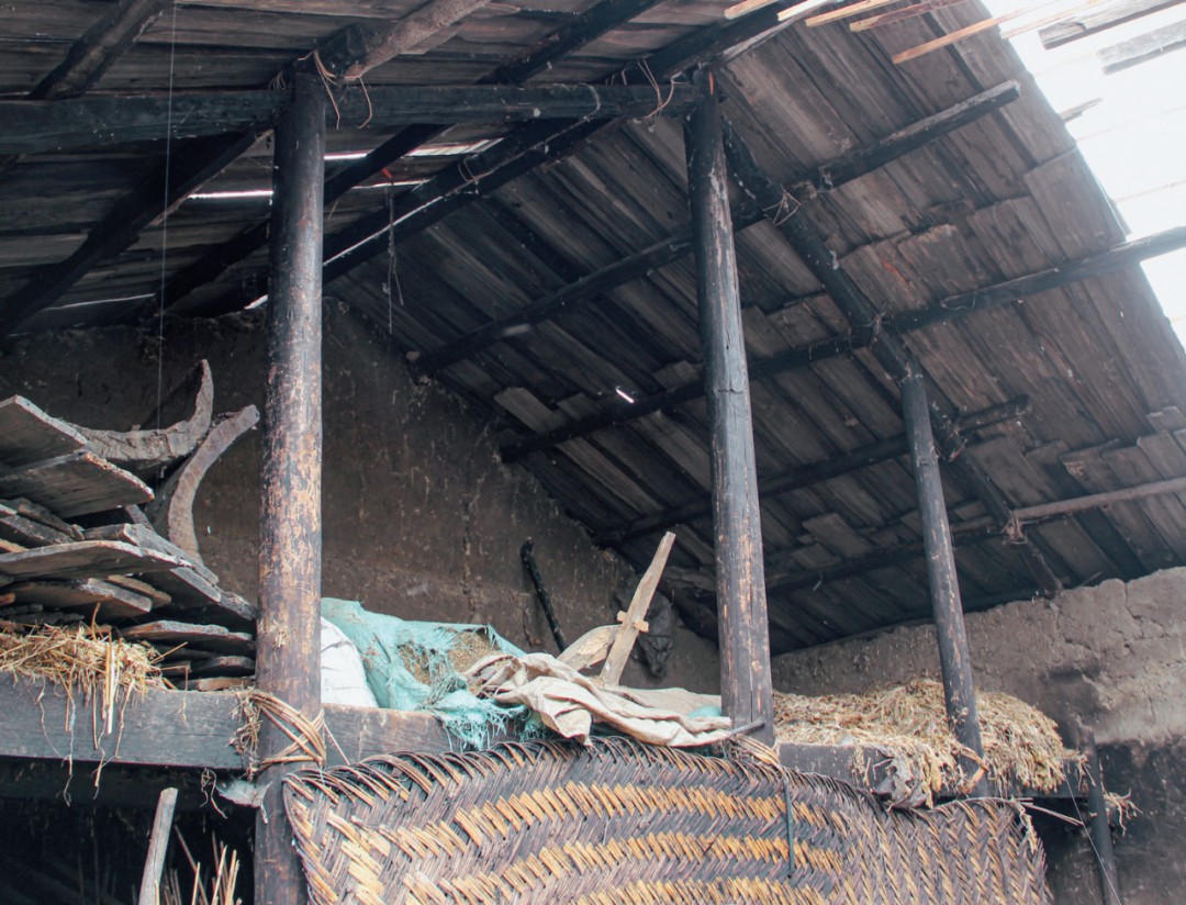 图1-9四川凉山美姑县古托村。20世纪80年代建造的房屋,使用竹篾绑扎柱枋