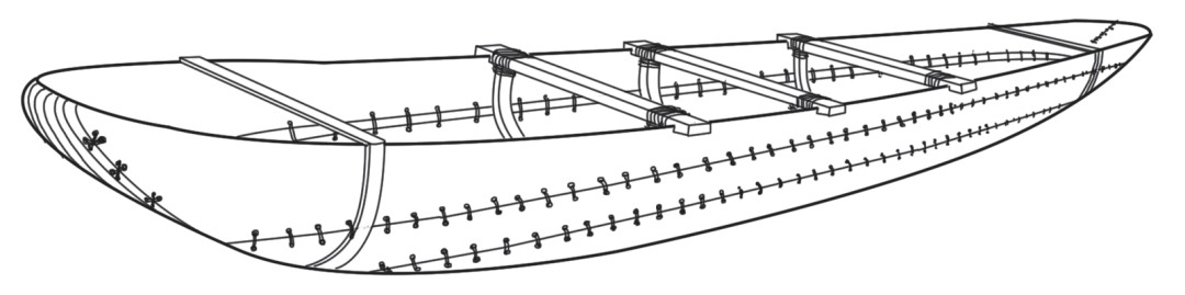 图1-10英国约克郡(Yorkshire)出土的“缝制船”(摹自A History of Technology. Vol.1,738)