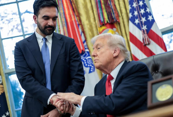 当地时间周五(11月21日)下午,正迎接周末的美国民众从电视、社交媒体看到震撼一幕:昔日死敌——美国总统特朗普和纽约当选市长马姆达尼,竟公开“你侬我侬”。