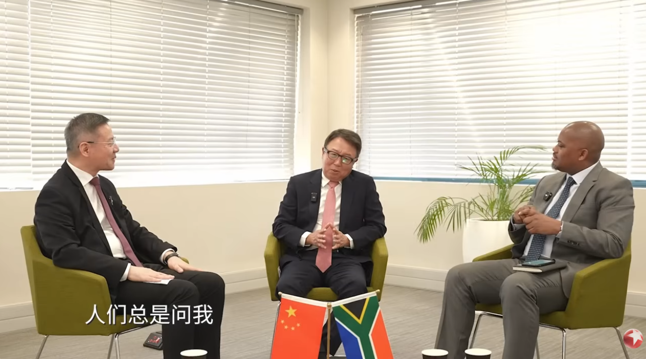 主持人:接下来请大家看一下张教授在南非跟吴鹏大使和布萨尼教授对话的片段,听听他们对中非合作怎么说。