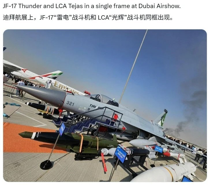 这可能是印度空军与航空工业非要让“光辉”战机在迪拜航展高调亮相的原因。在东西方冷战热斗乃至直接冲突的今天,“迪拜”航展成为了少有的能同时容纳东西方战机同台竞技的航展,赋予了这个航展别样的政治意义。毕竟,就在“光辉”展台的附近,巴基斯坦空军驻扎在卡拉奇的第8“海德斯”中队正在向他们的教友兄弟们自豪地展示本国空军的最新战力。