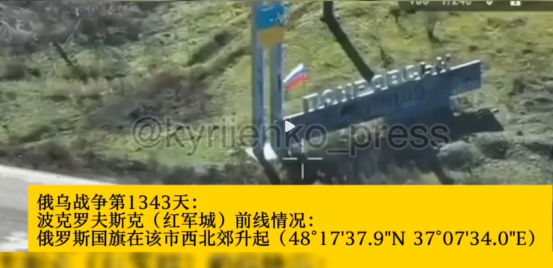 这使得战场很多时候会出现拿人命堆砌出来的地狱笑话:11月10日,俄军在占领红军城最西部入口的泽连斯基打卡点以后进行了插旗。随后乌克兰人用FPV愤怒地炸掉了俄军的旗帜,接着俄军炸掉了红军城入口处的乌克兰国旗标志。