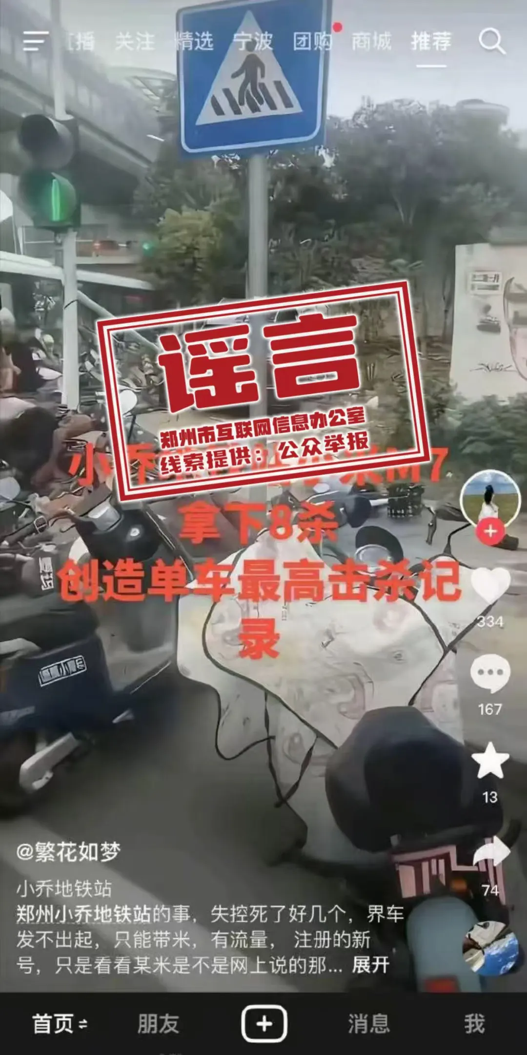 微信公众号“网信郑州”11月23日消息,近日,网络平台账号“繁花如梦”发布信息称“小乔地铁站小米M7拿下8杀,创造单车最高击杀记录”。经新郑市相关部门核实,该事件发生于2025年5月21日,因驾驶员操作失误造成4人受伤,无人员死亡。网传相关信息均为谣言,请大家不造谣、不信谣、不传谣。