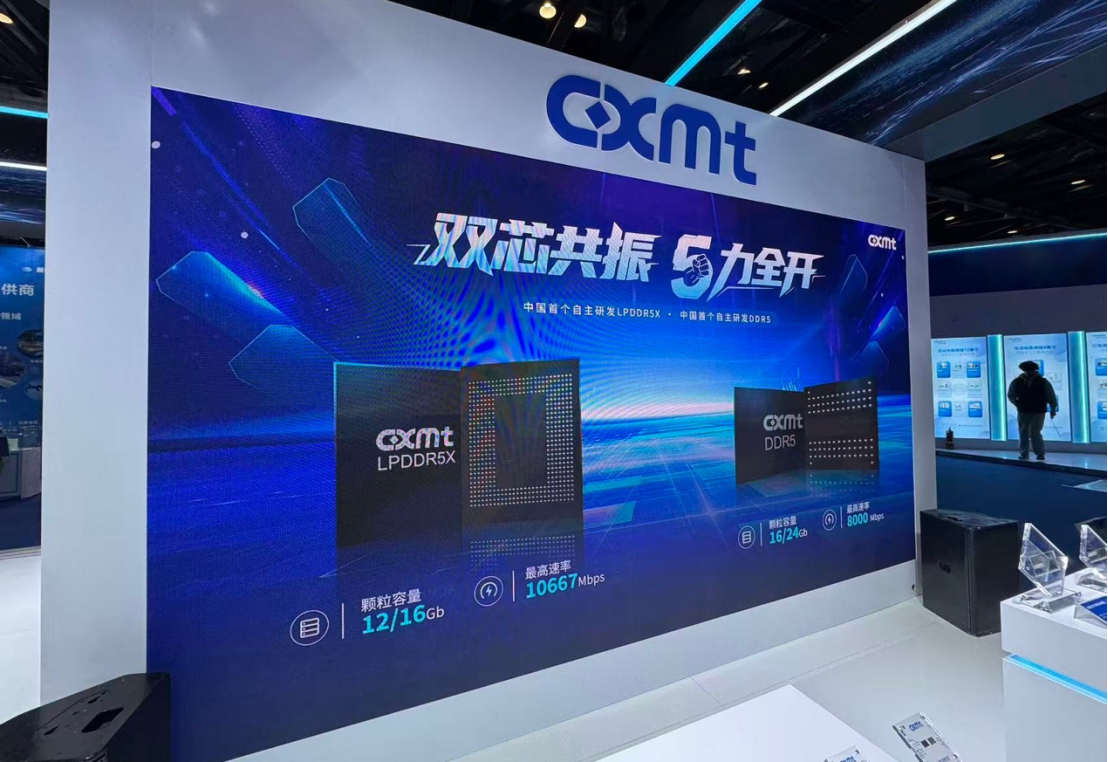 在展台上,长鑫存储展示了最新DDR5系列产品,以及最高速率10667Mbps、最高颗粒容量16Gb的最新LPDDR5X移动端内存。据介绍,这两大产品系列速率、容量双维度均位居业界第一梯队,标志其产品性能与布局已全面达到全球主流高端水准,国产存储芯片具备与国际一线大厂同台竞技的技术实力。