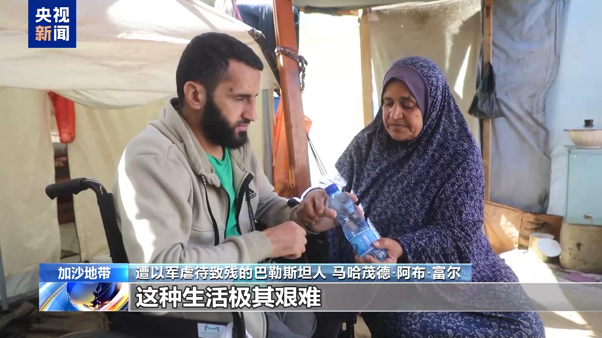 *遭以军虐待致残的巴勒斯坦人 马哈茂德·阿布·富尔:*如今,我的生活条件非常艰难,我住在一顶帐篷里,这里并不适合我的身体状况。我和其他人的生活条件一样,但对一个失明的,只有一条腿的人来说,这种生活极其艰难。自由是珍贵的,但说实话,对我来说,能够拥有视力或许更为重要。