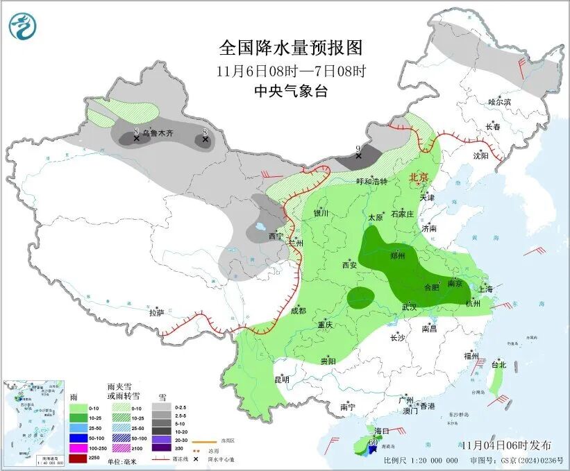 今天(11月4日),南方降雨将明显减弱,但海南岛东部仍需注意防范大到暴雨。明天,新一轮雨雪天气将在新疆率先登场,之后陆续影响中东部大部地区,同时一股较强冷空气也将自西向东给大部地区带来大风降温天气。