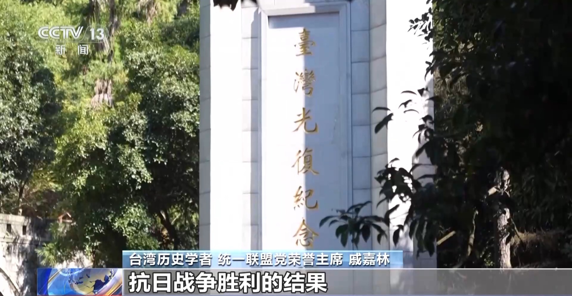 *台湾历史学者 统一联盟党荣誉主席 戚嘉林:*事实上,130年前是日本人侵占、侵略,占据了台湾。80年前我们收复了台湾。台湾是属于中国的一部分,这是一个历史的事实。收复台湾是我们全体中国人民抗日战争胜利的结果。没有抗日战争胜利,就没有台湾光复。我们透过这样的历史回归真相,让台湾、让全世界了解中国是如何在抗日战争胜利以后对台湾恢复行使主权。