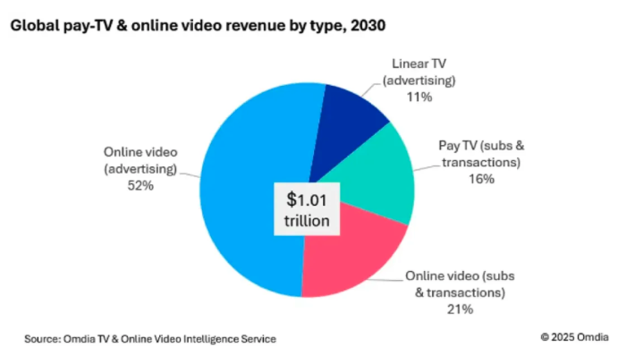 机构:2030年全球电视与视频市场预计突破1万亿美元
