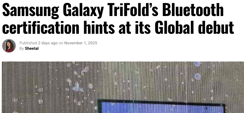 三星三折叠手机Galaxy Z TriFold现身蓝牙认证库,多型号曝光