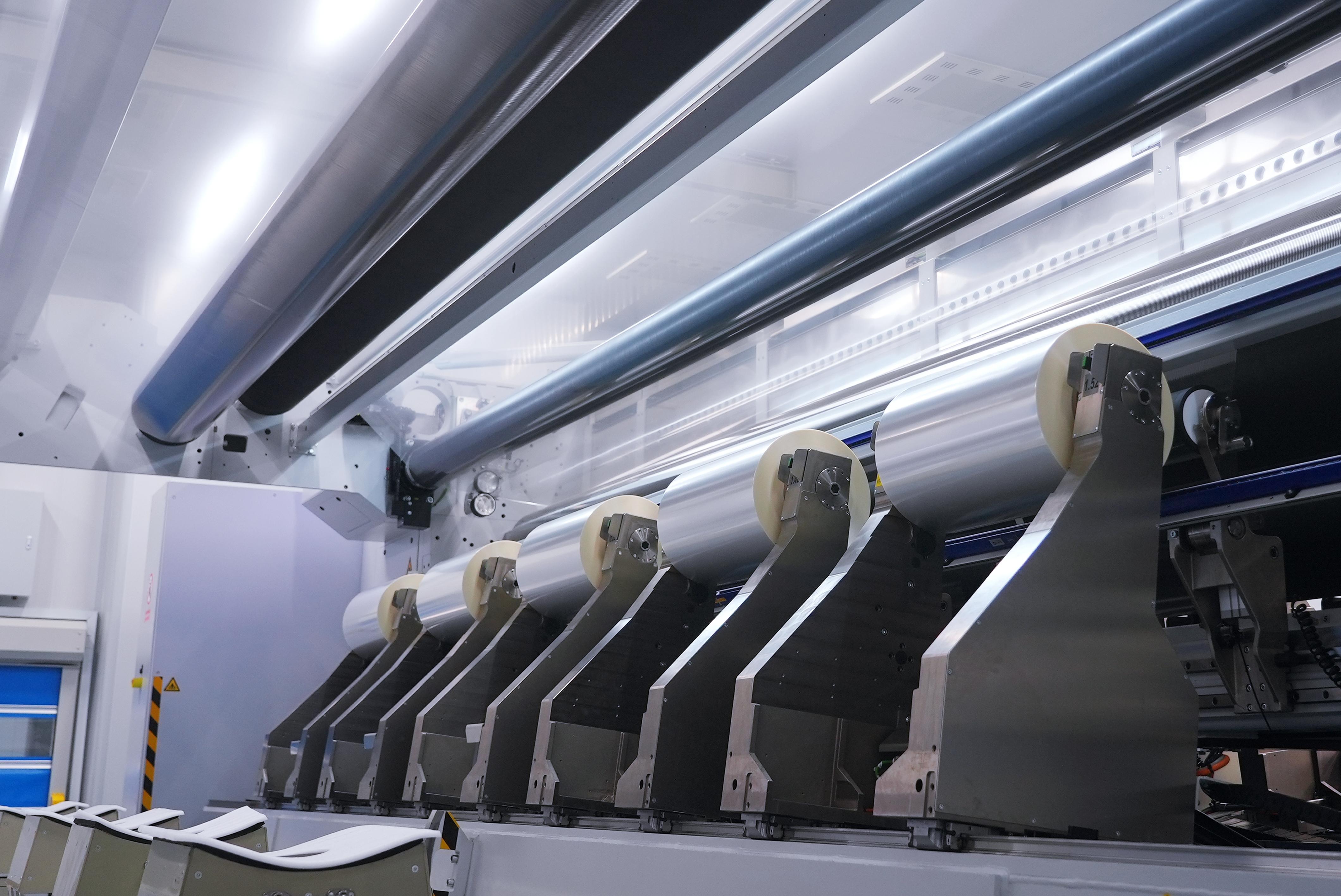 这条生产线由中仑新材料股份有限公司投建,总投资25亿元,占地13.44万平方米,主要量产超薄电容膜与复合集流体基膜。这两类材料技术门槛高、应用前景广阔。生产线采用自主研发的双向拉伸工艺,生产宽幅可达6.4米,技术达到国际领先水平,同时单位能耗进一步降低。目前,全球具备该级别生产能力的企业屈指可数。