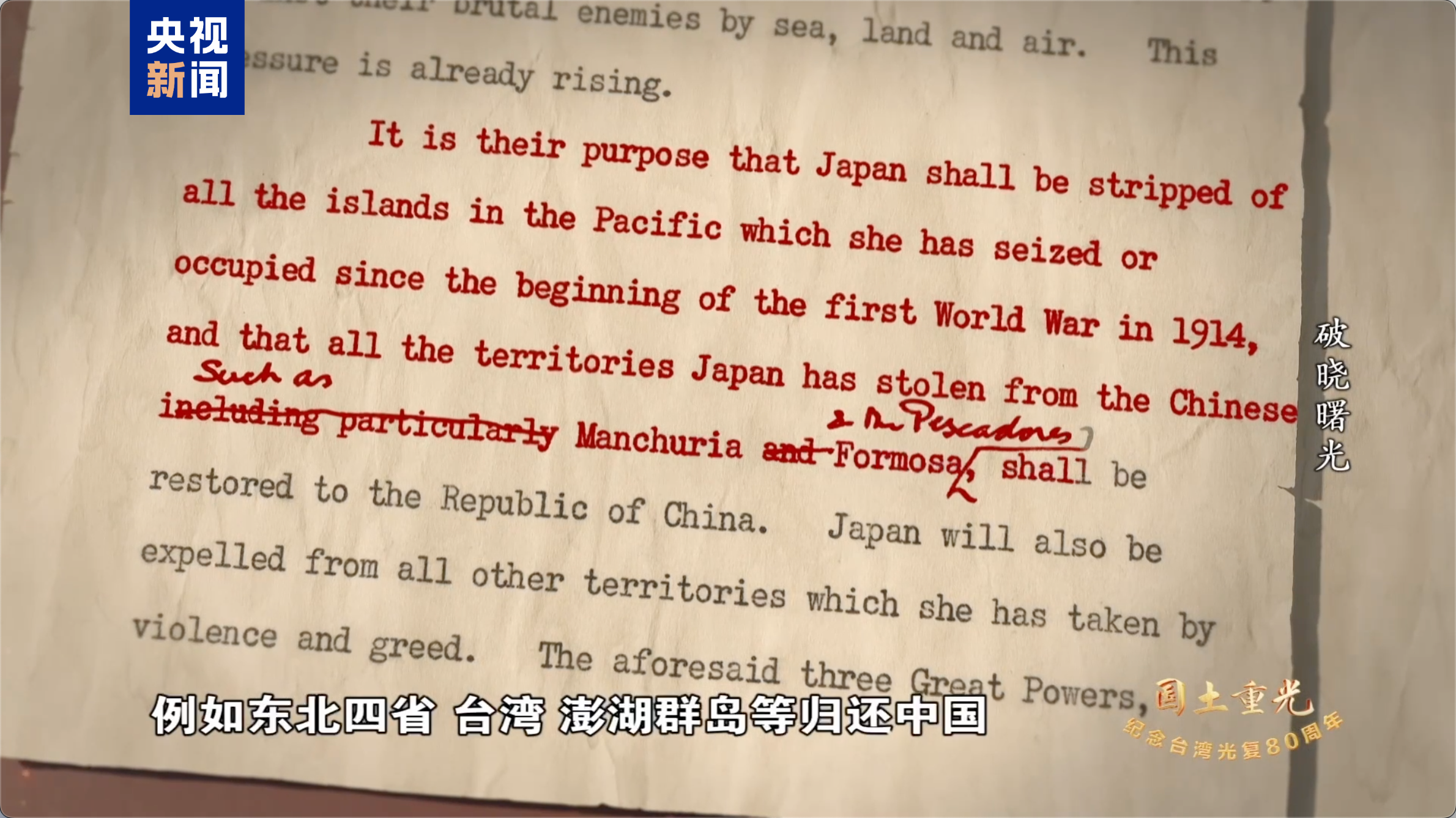在中方代表的据理力争之下,中方提交的《开罗宣言》草案得以通过。