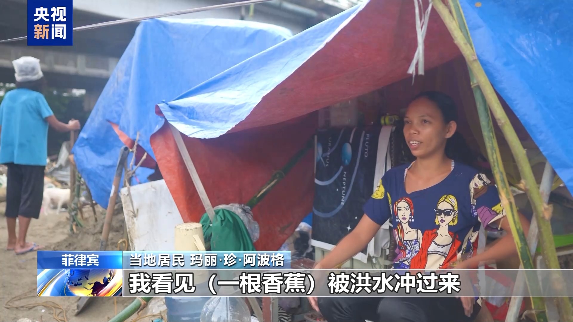 *当地居民 玛丽·珍·阿波格:*我看见(一根香蕉)被洪水冲过来,就捡来当早餐吃了。这太难了,因为家里存的米等食物也被洪水冲走了。我们以前住在这里,但大部分房子都被洪水冲毁了。