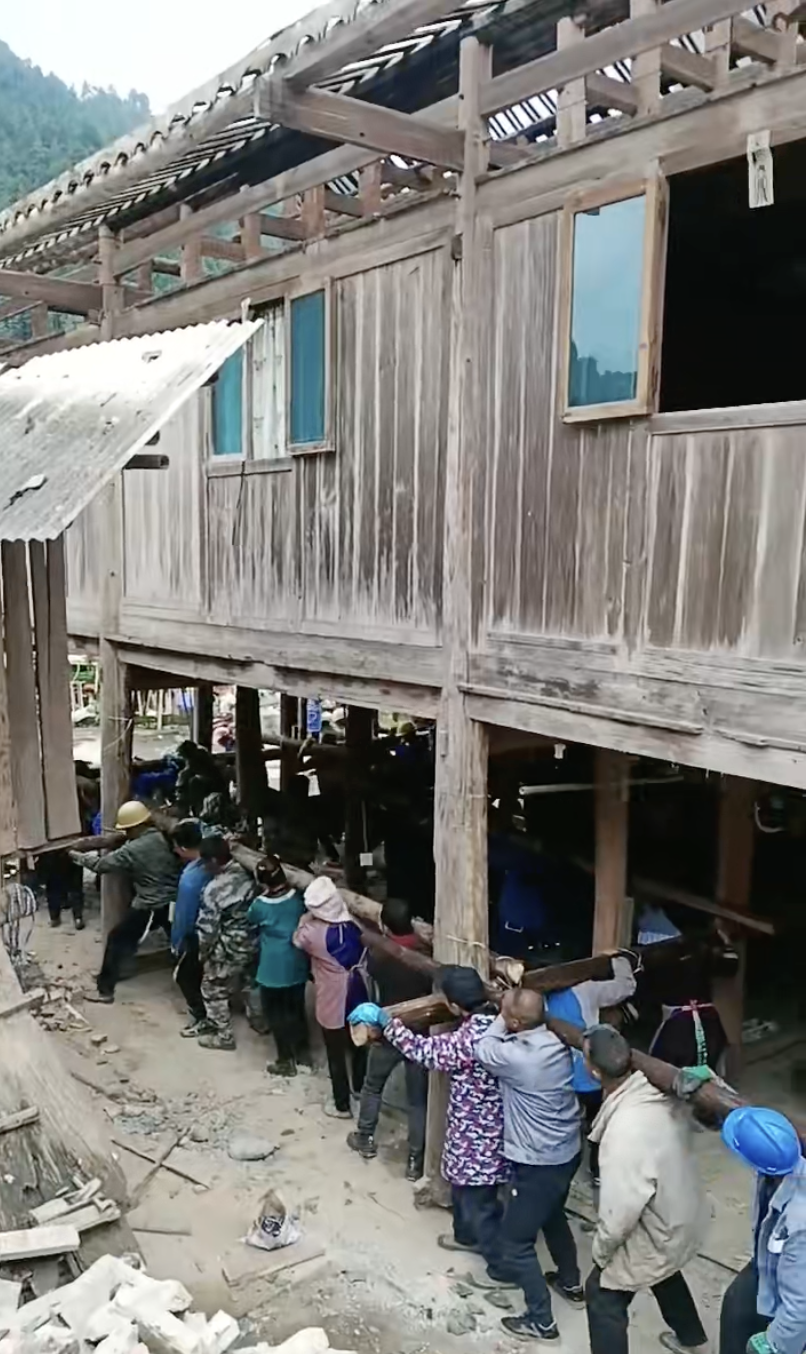 11月5日,一名IP为贵州的网友发布的视频引发关注。视频中有上百号人,通过肩扛的方式,把一整座木屋搬起,整座房屋被搬移。