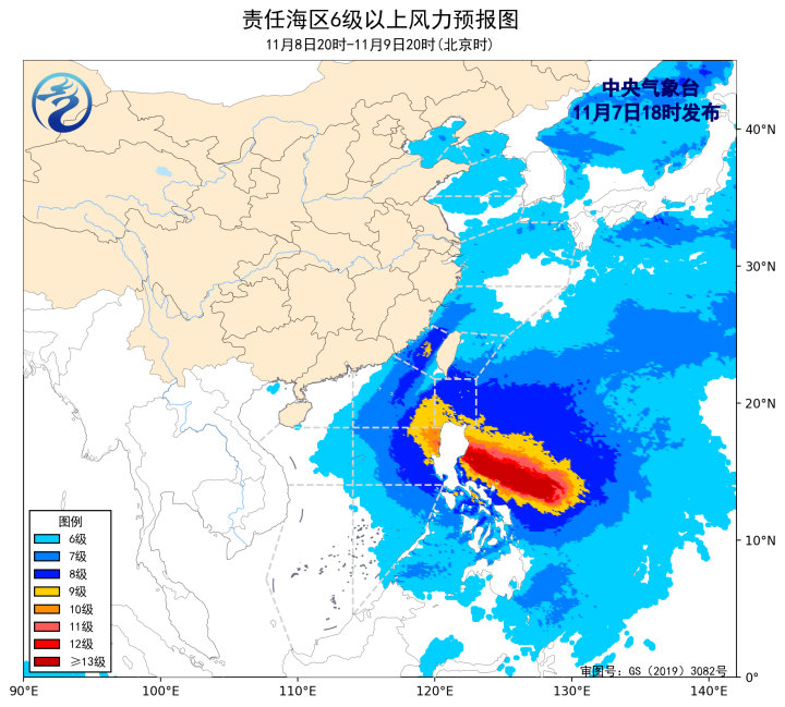 8日20时至9日20时,南海中东部海域将有7~8级、阵风9级增大到9~10级、阵风11级的偏北风,巴士海峡、南海东北部海域将有7~9级、阵风10级的东北风,台湾海峡、台湾以东洋面将有6~8级、阵风9级的偏北到东北风,东海南部海域将有5~7级、阵风8级的东北风,南海东南部海域将有5~7级、阵风8级的偏北到西北风,东海北部海域将有5~6级、阵风7级的偏南转偏北风,南海西北部和中西部海域将有4~6级、阵风7级的东北风,渤海、黄海北部海域将有4~6级、阵风7级的偏北到西北风。