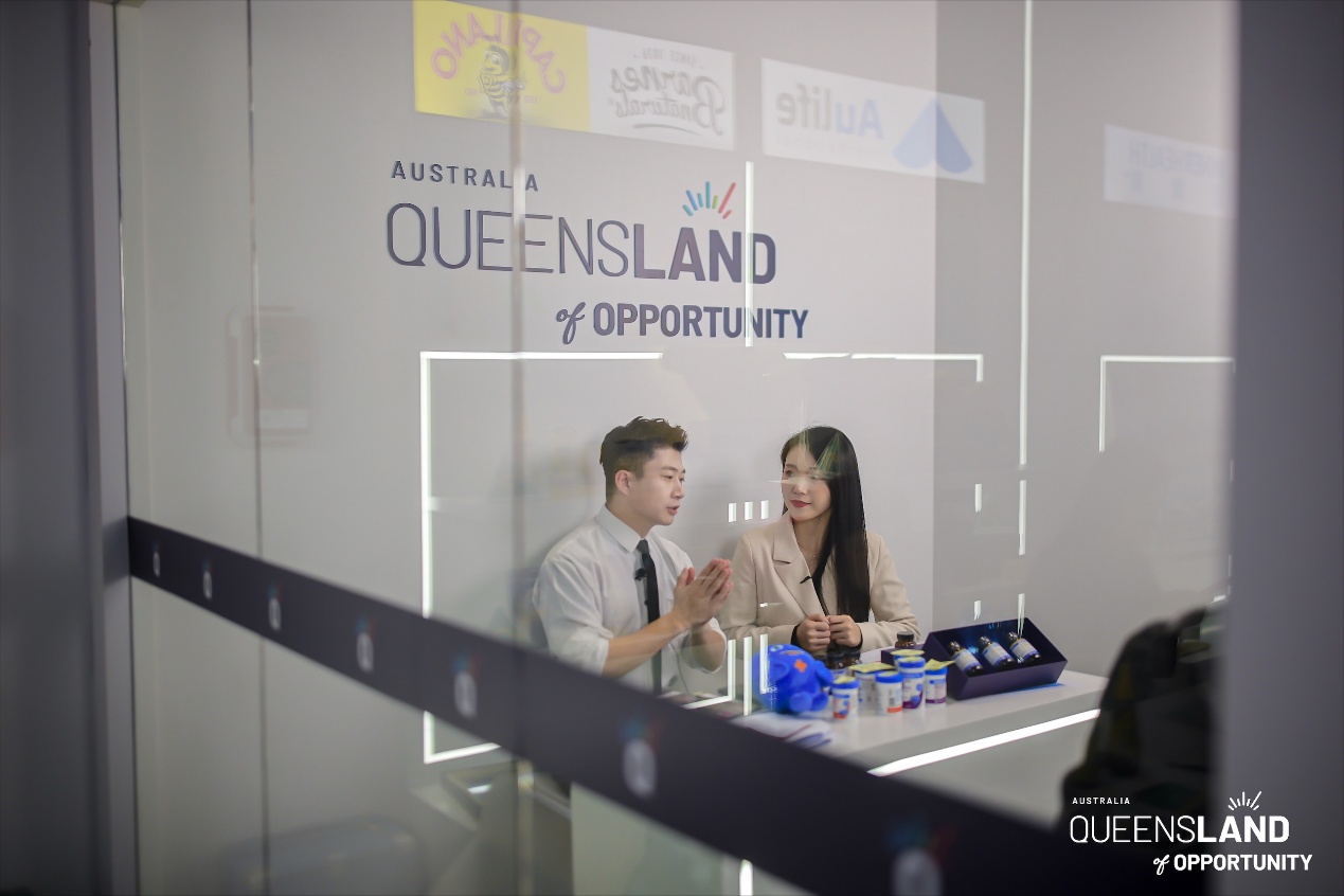 记者在现场也注意到,除了展台上的牛排等现做食物吸引了不少观众排队品尝之外,昆士兰州还在用直播这种时下最流行的方式对多种优质产品进行推介。