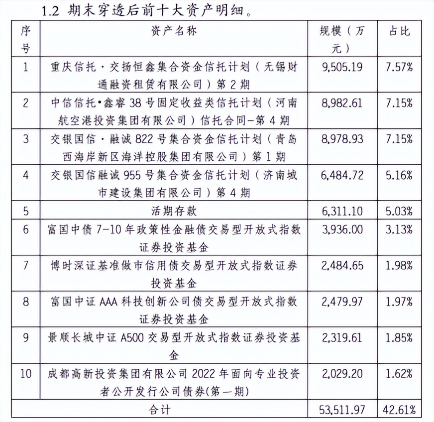 “稳享添福5年封闭式2号养老理财产品”的第三季度报告显示,其减配债券,增加权益类投资和公募基金,前十大资产明细中,新进“富国中证 AAA 科技创新公司债交易型开放式指数证券投资基金”和“景顺长城中证 A500 交易型开放式指数证券投资基金”。