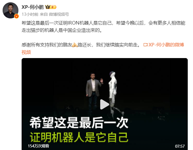 小鹏 IRON 机器人遭“真人疑云”,董事长哽咽辟谣