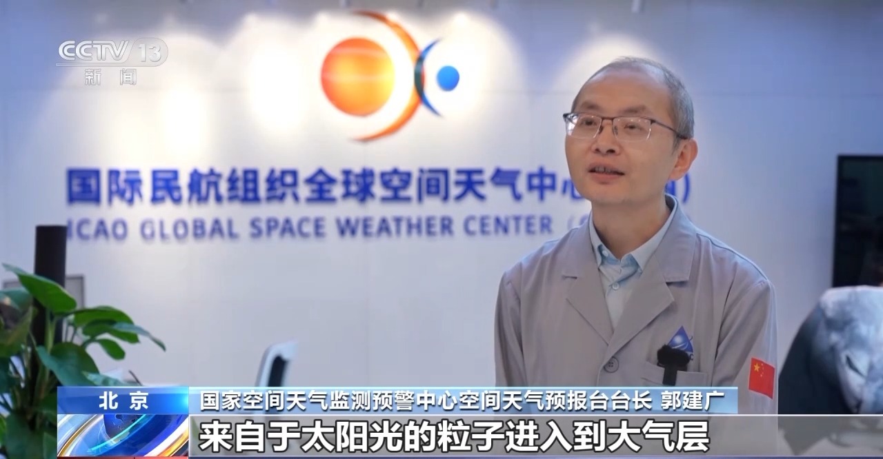 *国家空间天气监测预警中心空间天气预报台台长 郭建广:*太阳耀斑科学地讲,是太阳上一项能量集中释放的过程,它在科学观测上是在某一个波段会产生亮斑,就像闪耀一样,在科学上它是观测饱和了,因为它是有大量的能量释放,太阳耀斑往往会伴随着向外喷发物质,会伴随日冕物质抛射。