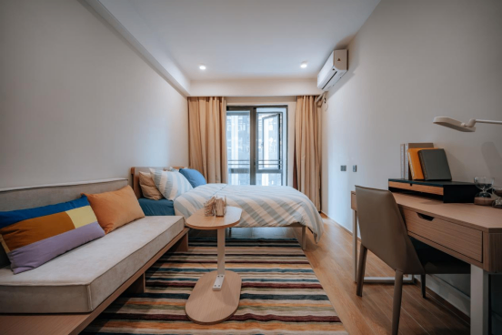 建设并运营项目,保利发展控股调研了年轻人的居住需求。“大部分年轻人其实需求很简单,有冰箱、空调、洗衣机就足够,还有就是独立卫生间和阳台,所以我们公寓都设计成了一居室,保障他们的基本需求,也方便他们入住后进行个性化的布置。”林心海带记者参观房间时表示,开业时仅用了45天,公寓500间房子就全部租出去了。“对年轻人来说,我们的最大优势是‘放心’。我们作为统一管理的企业,租客打起交道来比较简单,不用去面对形形色色、不确定是否好相处的房东。”林心海说。