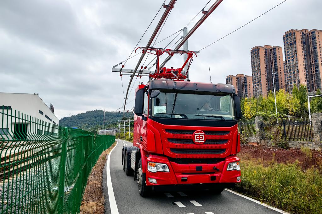 边跑边充,“绿电”驱动的“辫子重卡”亮相“轨博会”