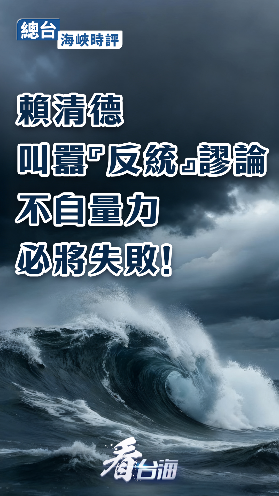 总台海峡时评丨赖清德叫嚣“反统”谬论不自量力,必将失败!