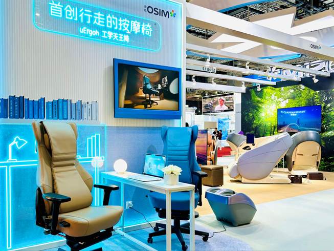 本届进博会上,OSIM傲胜的展台聚焦“身心协同养护”需求,多款核心产品引发关注。林晓慧介绍:“今年我们带来了年度重磅新品‘行走的按摩椅’uErgoh工学天王椅、旗舰‘养身椅系列’uDream 5感养身椅及uLove3减压养身椅,还有多款IP联名萌趣产品,既展现品牌在健康科技领域的创新实力,也覆盖了不同年龄层和预算的消费者需求。” 其中,首次亮相的uErgoh工学天王椅极具亮点,创新性融合智能科技、按摩科技与人体工学设计,以“好按、好坐、好用”三大优势打破场景局限,轻松适配办公、娱乐、学习等多元场景,让用户随时随地享受专业级按摩服务。