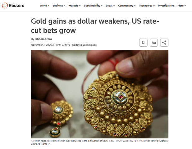 路透社近日发文称,美国私营部门就业报告显示美国劳动力市场疲软,并提振了美国再次降息的预期,推动了黄金的避险需求。ANZ的commodity strategist Soni Kumari表示:“私营部门的就业数据仍然表明12月降息的可能性较大,这为黄金价格提供了一定支撑。”