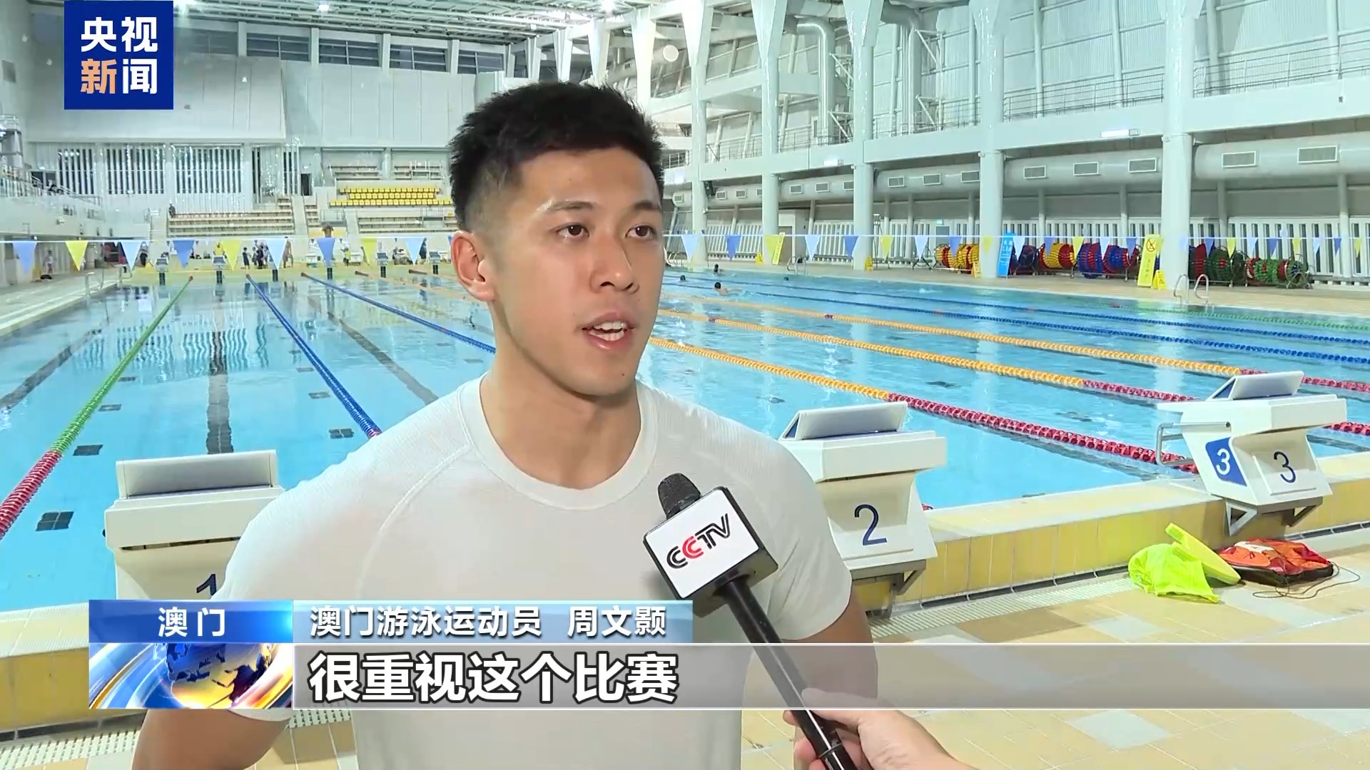 *澳门游泳运动员 周文颢:*我把全运会当作是今年最重要的比赛,很重视这个比赛,然后比赛水平也很高。