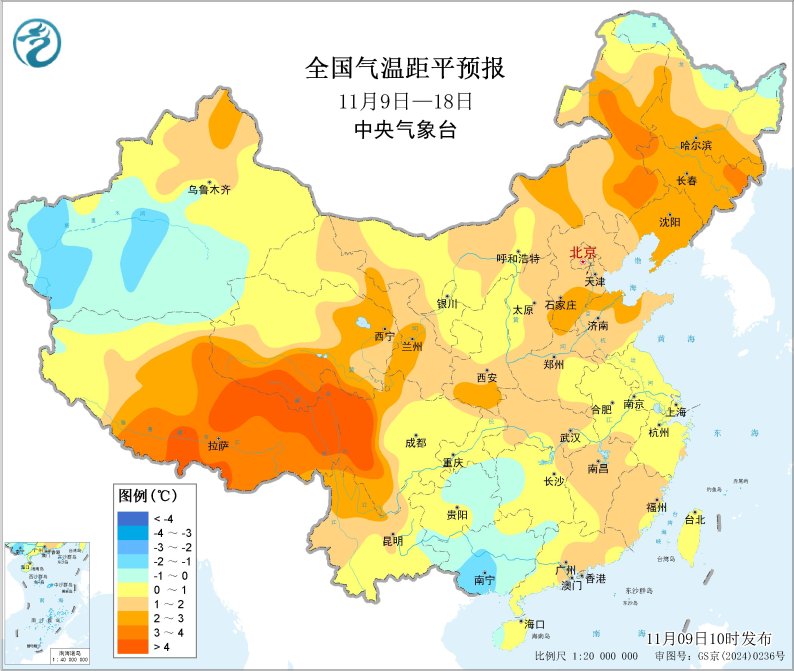 未来10天,除新疆南部、华南西部平均气温较常年同期偏低1℃左右外,全国其他大部地区气温偏高1~2℃,其中青藏高原和东北地区中南部偏高3~4℃。