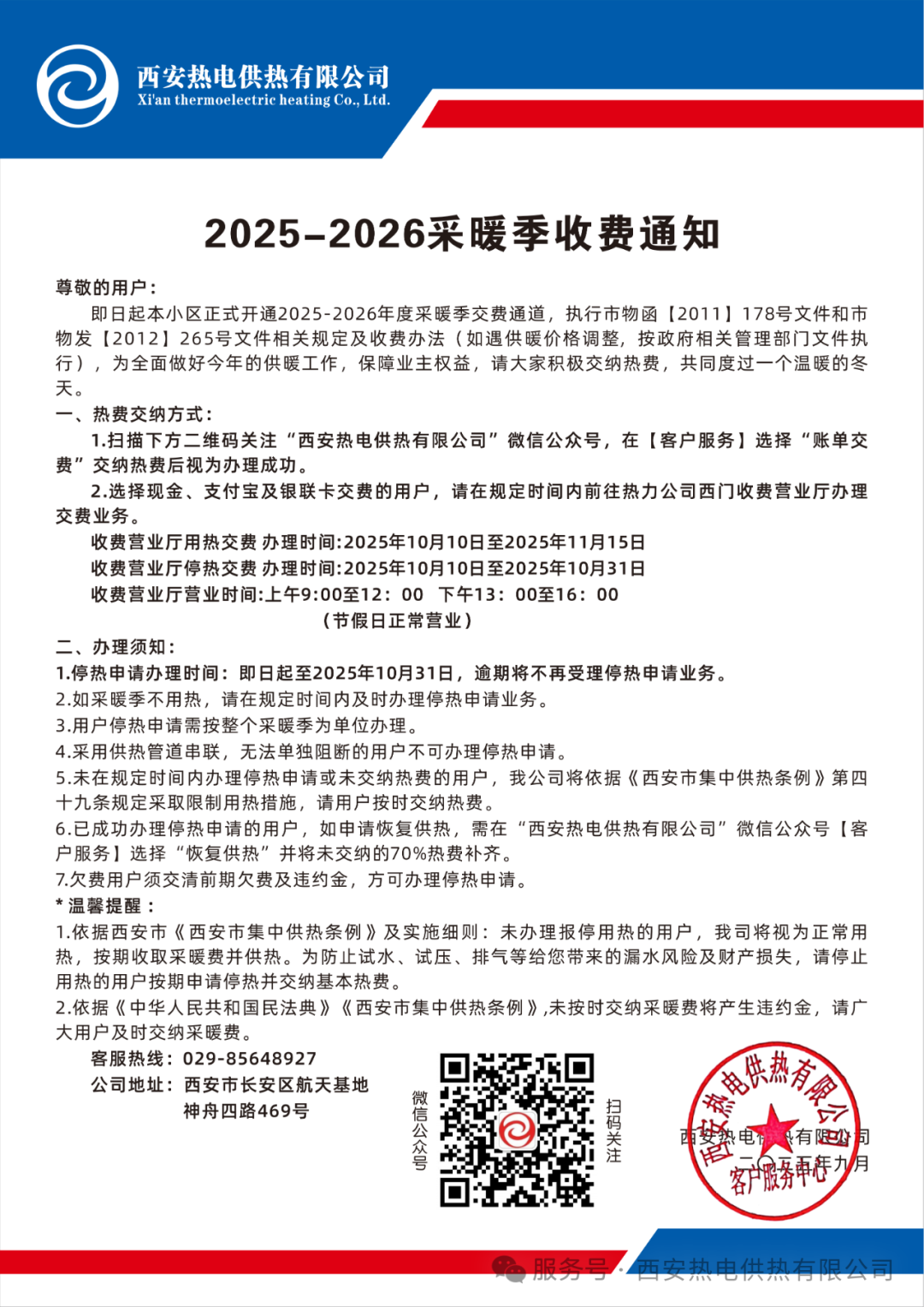 2025-2026采暖季用户服务温馨提示