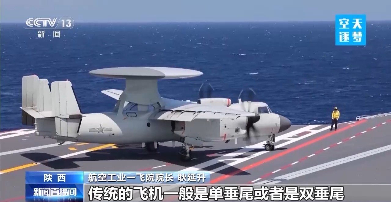 *总台央视记者 李宁:*在我身边的这个就是我国第一型固定翼舰载预警机——空警-600,它是航母编队的“千里眼”,同时也是“司令部”。它的成功研制也标志着我国海军作战能力得到了质的提升。