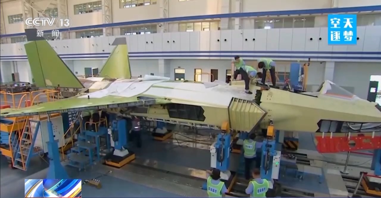 *总台央视记者 李宁:*这是一架正在生产中的歼-35,它是我国自主研制的最新一代的隐身舰载战斗机,它采用一体化设计,单座双发外倾双垂尾,是一款舰载多用途战斗机,它主要是以制空作战为主,兼顾对面作战。