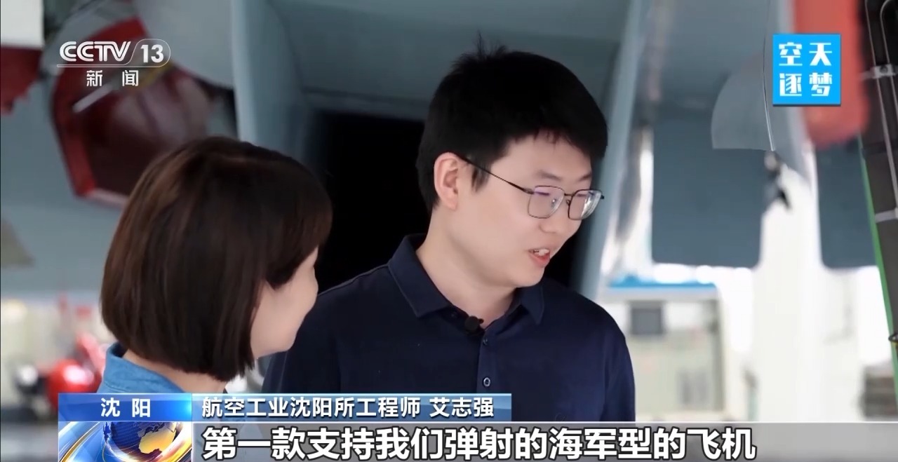 *航空工业沈阳所工程师 艾志强:*通过弹射杆与航母上的弹射装置进行一个连接,当飞机起飞的时候快速地提升飞机的速度,然后达到飞机短距起飞的一个能力。